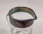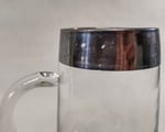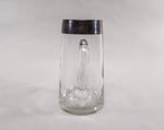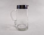 Vintage Dorothy Thorpe 52 oz. hand blown glass pitcher circa 1960s. Subtle taper with iconic thick sterling silver band around the rim. Overall great condition, natural darkened patina on silver, couple of chips to silver as shown in photo.