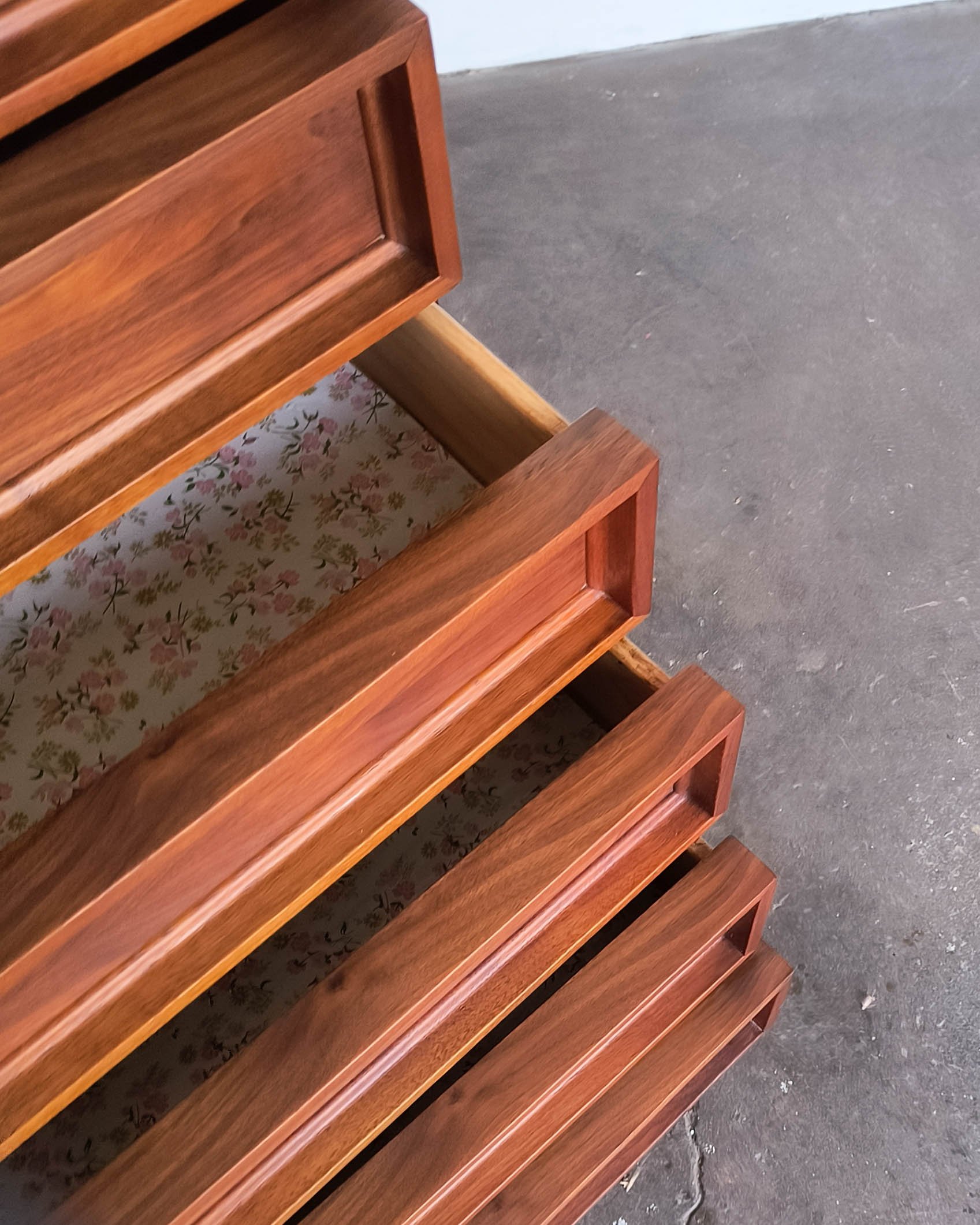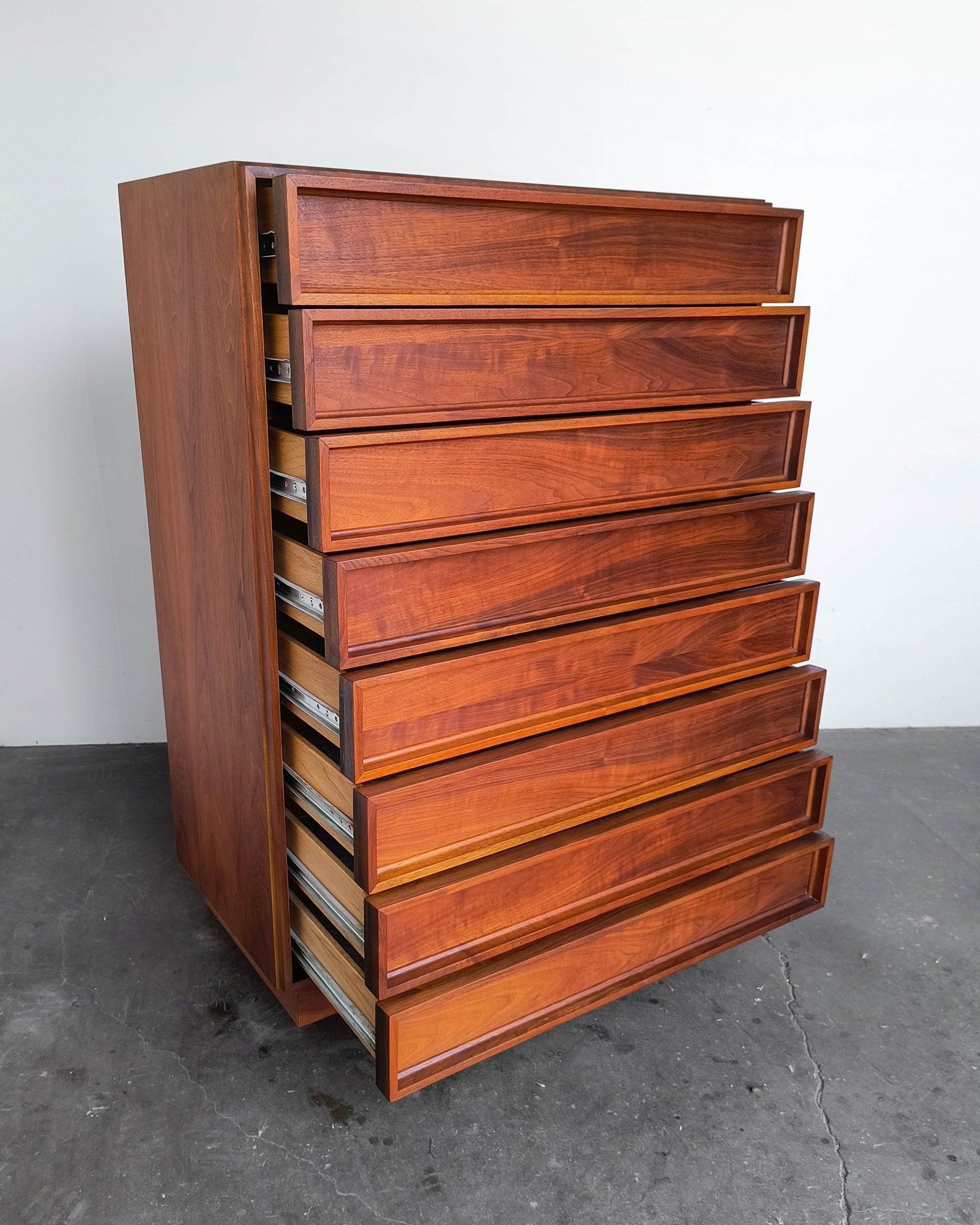 Walnut Brown Saltman Highboy Dresser by John Keal